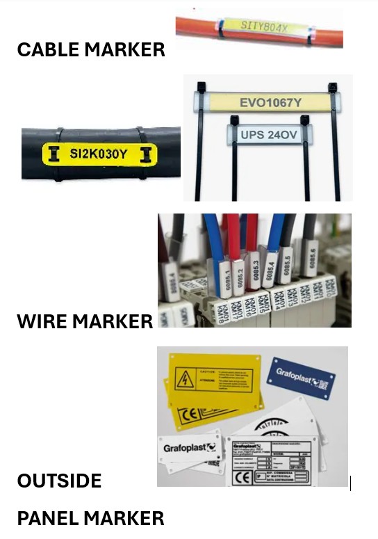POWER CABLE Marker, Instrument wire marker, Network wire marker, T-Block marker, Name Plate Panel marker