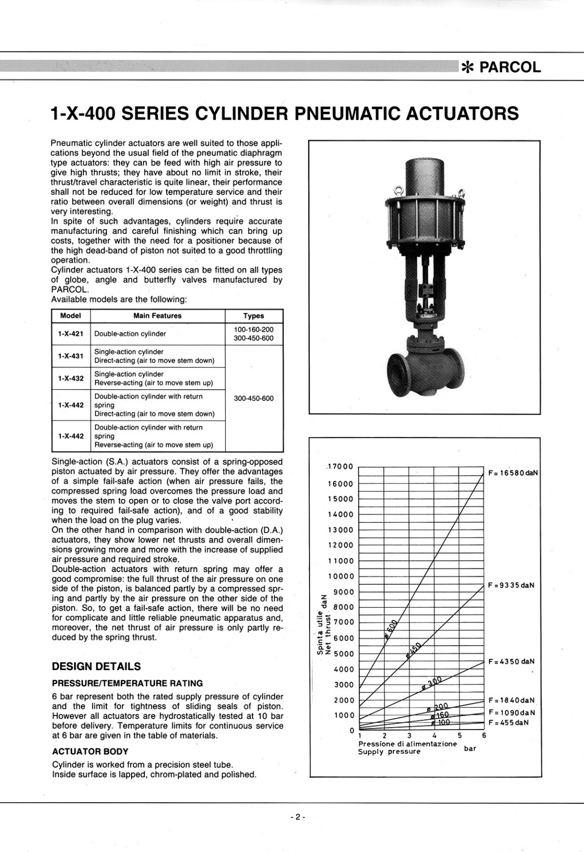 Pneumatic cylinder actuator are well suited to those applications beyond the usual field of the pneumatic diaphragm type actuators: they can be feed with high air pressure to give high thrust / travel characteristic is quite linear, their performance shall not be reduced for low temperature service and their ratio between overall dimensions (or weight) and thurst is very interesting.