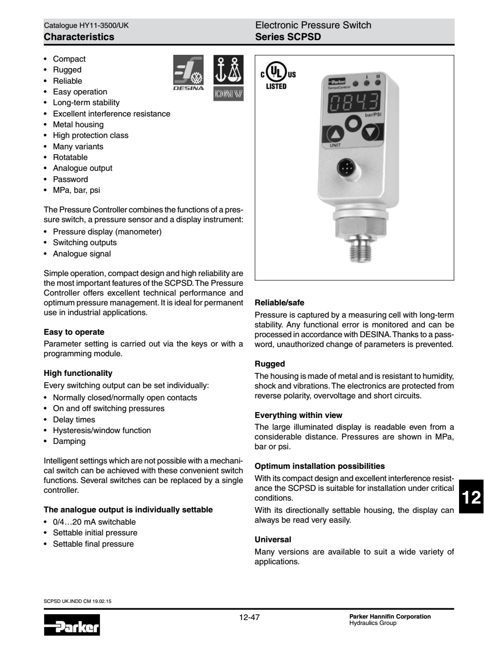 The Pressure Controller combines the functions of a pressure switch, a pressure sensor and a display instrument: